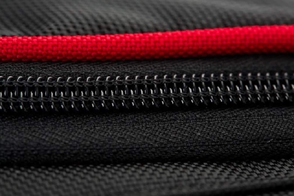 The zippers of the main pockets are made of pleasant to the touch and visually attractive elastomers.