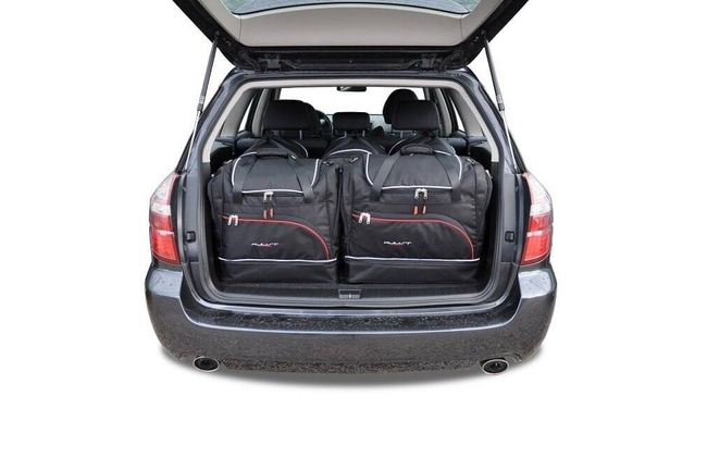 The bags fill every square inch of the boot thanks to their slanted sides that match the angle of the rear seats. This is a unique feature of KJUST car bags.