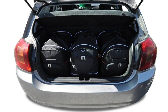 The bags fill every square inch of the boot thanks to their slanted sides that match the angle of the rear seats. This is a unique feature of KJUST car bags.