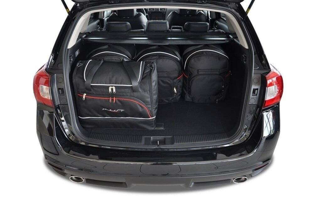 The bags fill every square inch of the boot thanks to their slanted sides that match the angle of the rear seats. This is a unique feature of KJUST car bags.