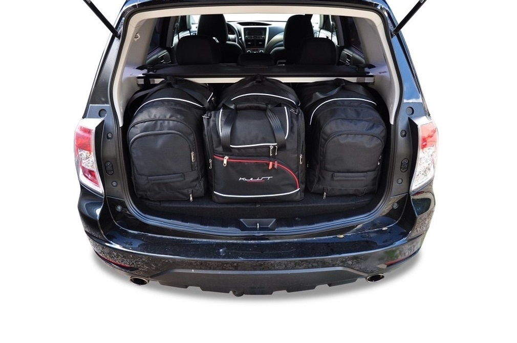 The bags fill every square inch of the boot thanks to their slanted sides that match the angle of the rear seats. This is a unique feature of KJUST car bags.