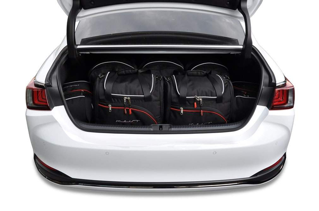 The bags fill every square inch of the boot thanks to their slanted sides that match the angle of the rear seats. This is a unique feature of KJUST car bags.