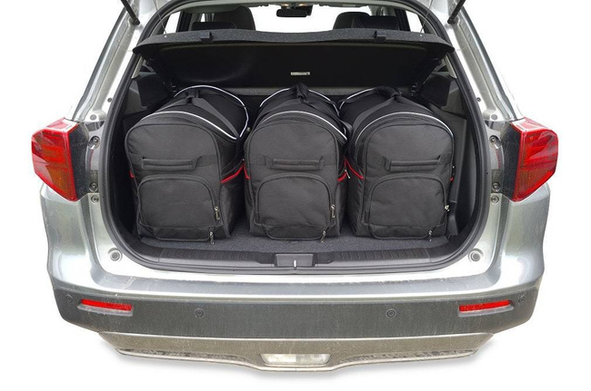The bags fill every square inch of the boot thanks to their slanted sides that match the angle of the rear seats. This is a unique feature of KJUST car bags.