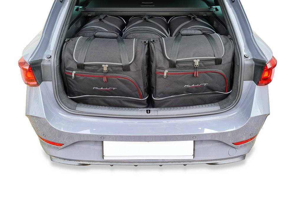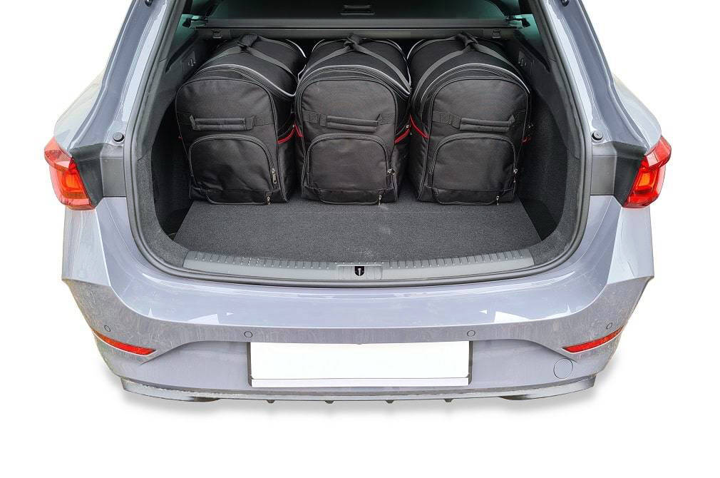 The bags fill every square inch of the boot thanks to their slanted sides that match the angle of the rear seats. This is a unique feature of KJUST car bags.