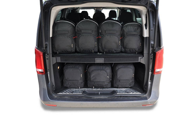 The bags fill every square inch of the boot thanks to their slanted sides that match the angle of the rear seats. This is a unique feature of KJUST car bags.