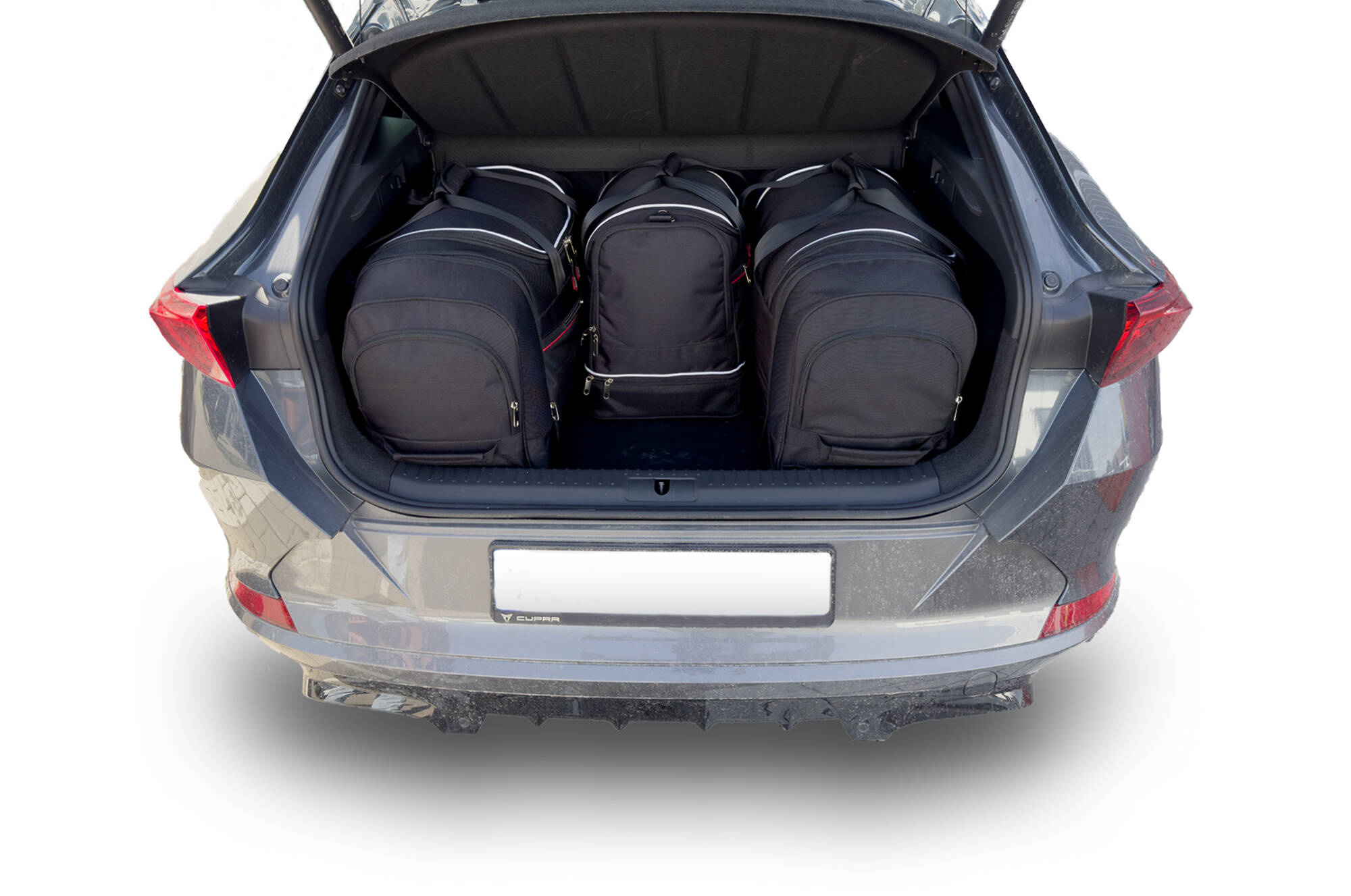 The bags fill every square inch of the boot thanks to their slanted sides that match the angle of the rear seats. This is a unique feature of KJUST car bags.