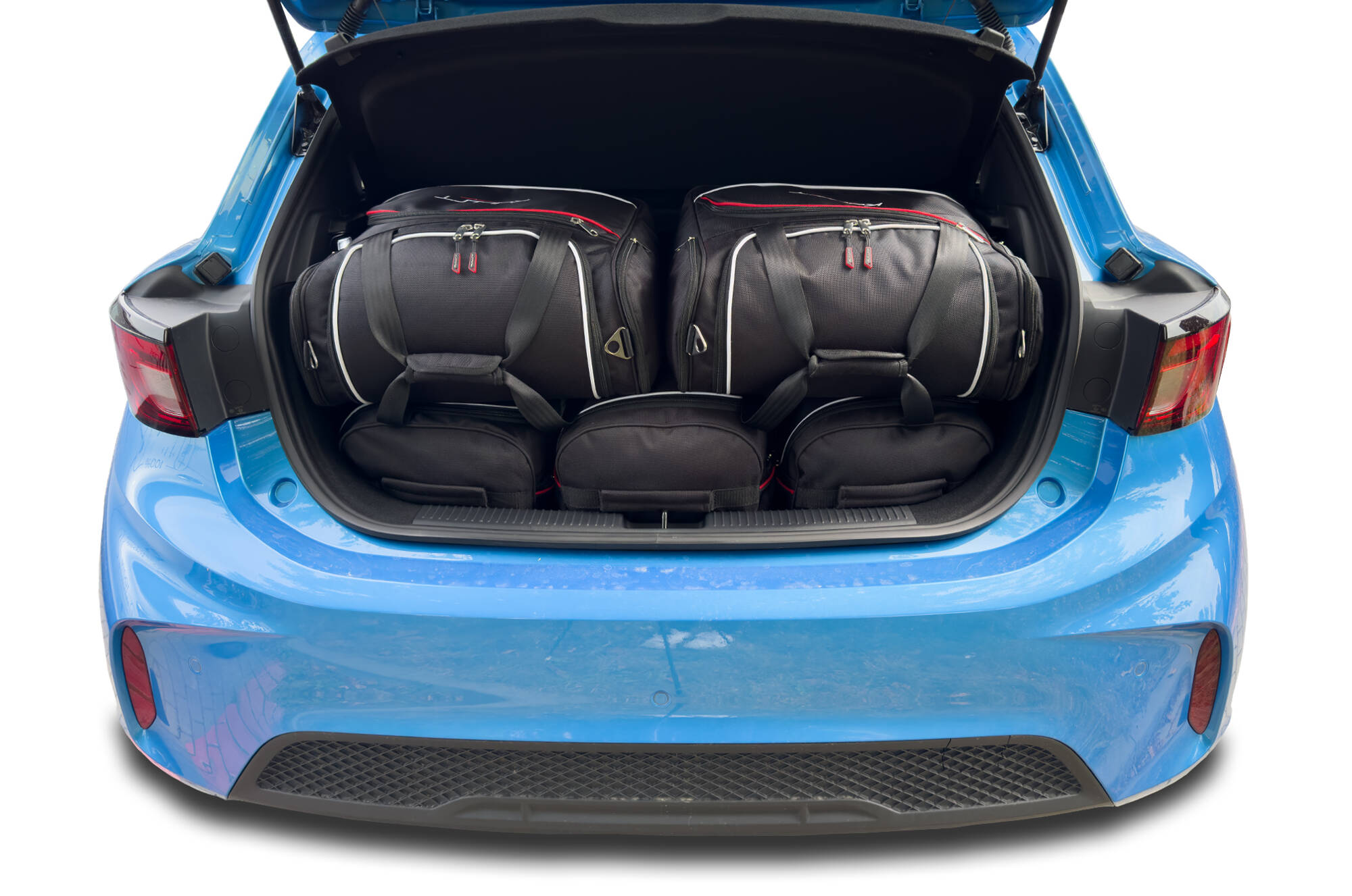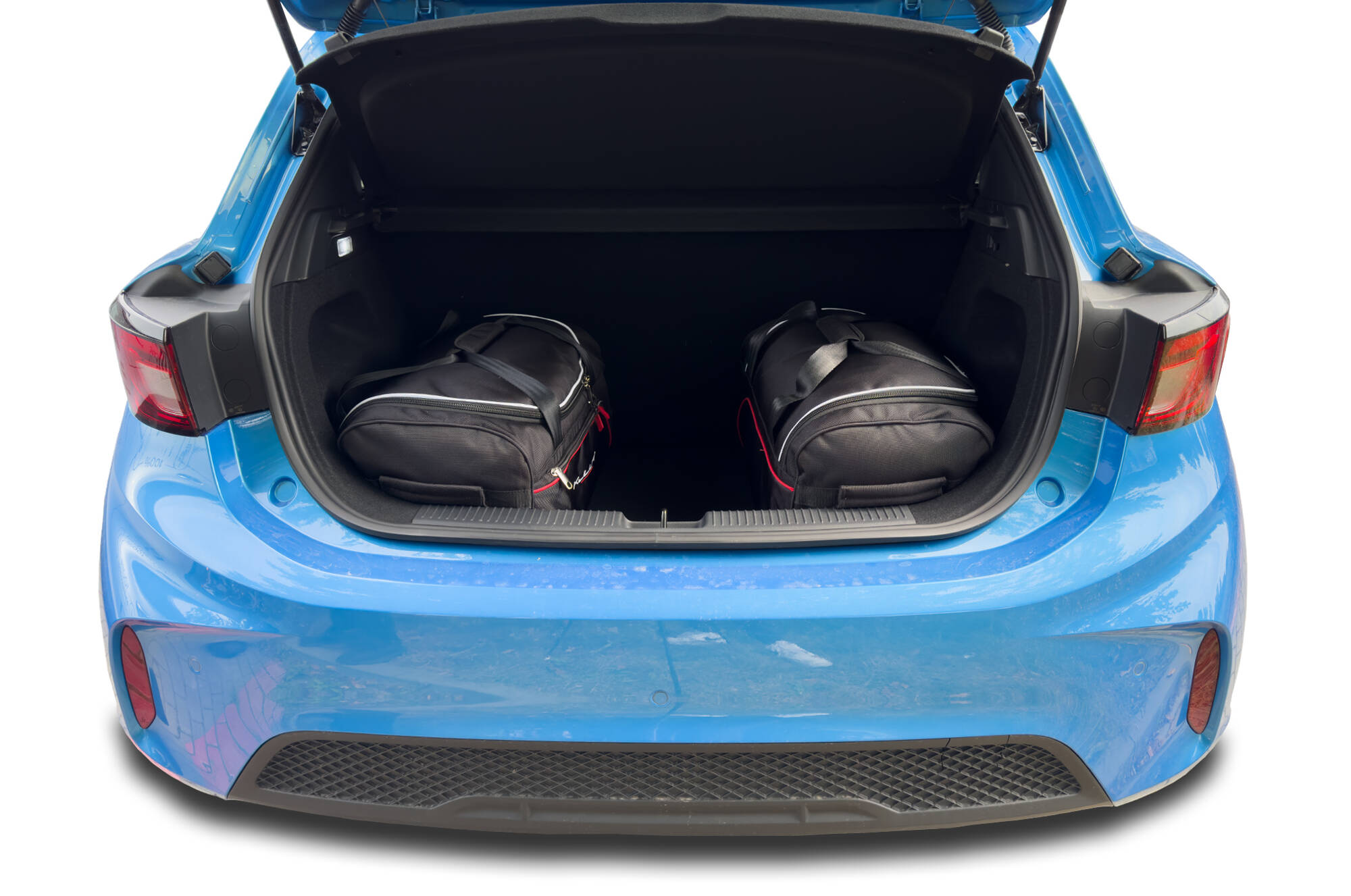 The bags fill every square inch of the boot thanks to their slanted sides that match the angle of the rear seats. This is a unique feature of KJUST car bags.