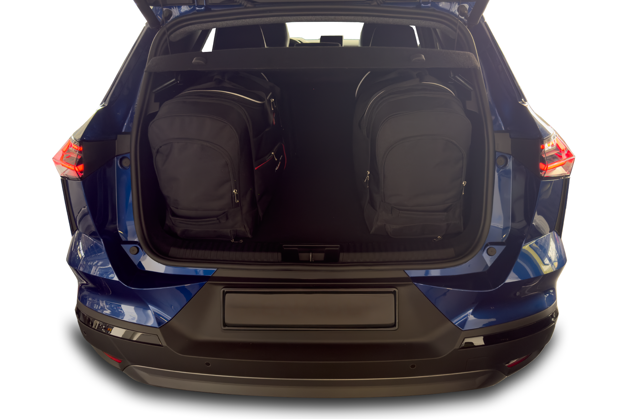 The bags fill every square inch of the boot thanks to their slanted sides that match the angle of the rear seats. This is a unique feature of KJUST car bags.