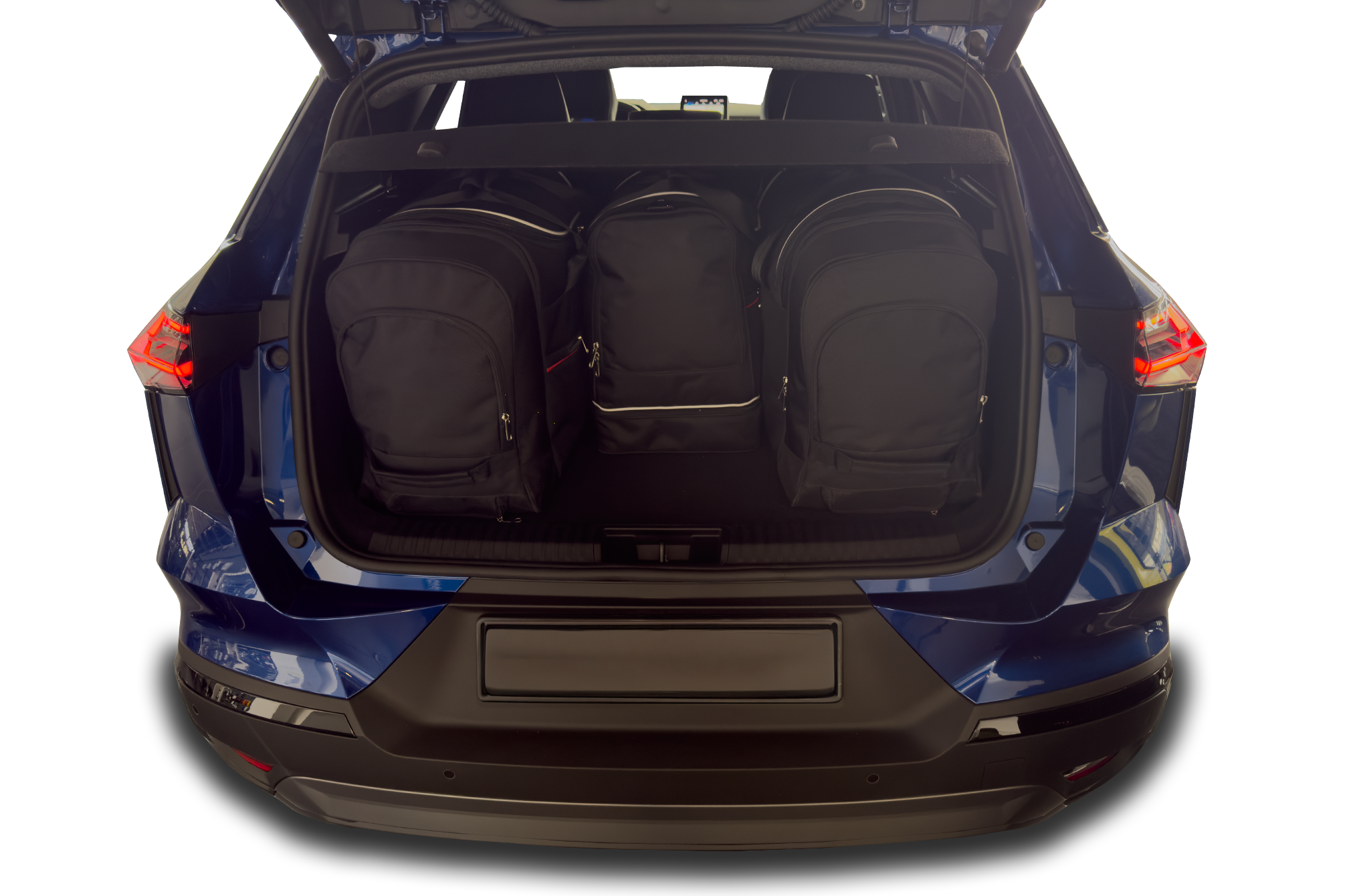 The bags fill every square inch of the boot thanks to their slanted sides that match the angle of the rear seats. This is a unique feature of KJUST car bags.