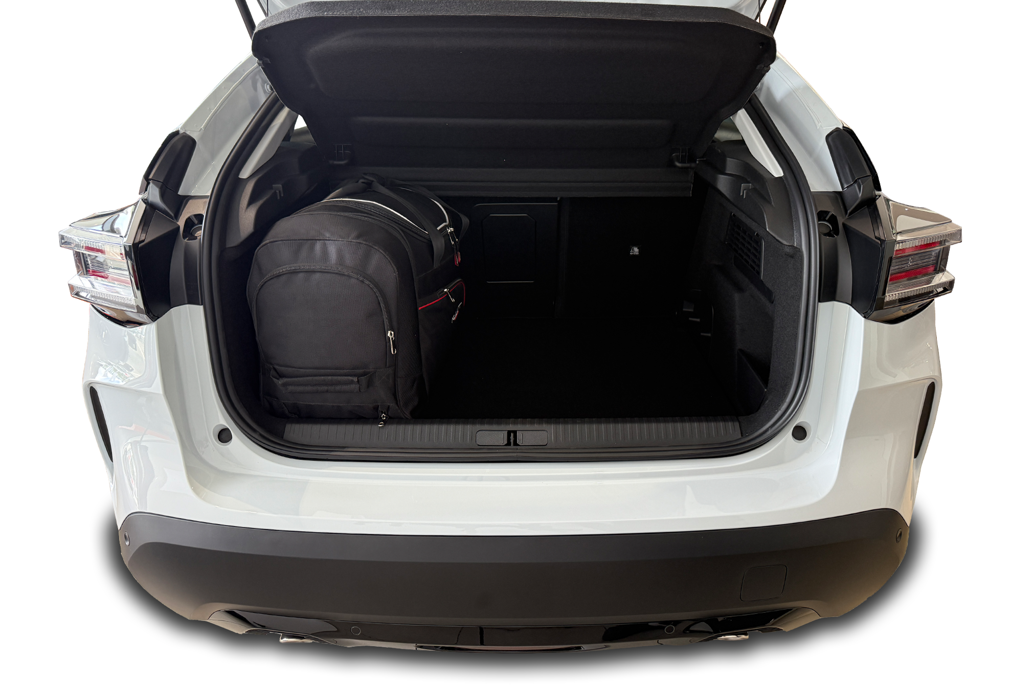 The bags fill every square inch of the boot thanks to their slanted sides that match the angle of the rear seats. This is a unique feature of KJUST car bags.