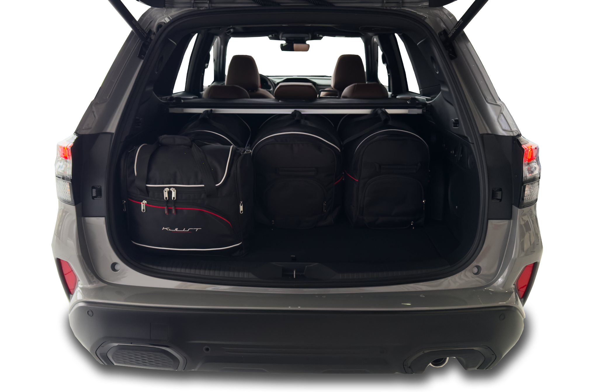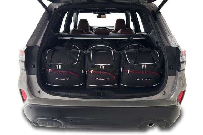 The bags fill every square inch of the boot thanks to their slanted sides that match the angle of the rear seats. This is a unique feature of KJUST car bags.