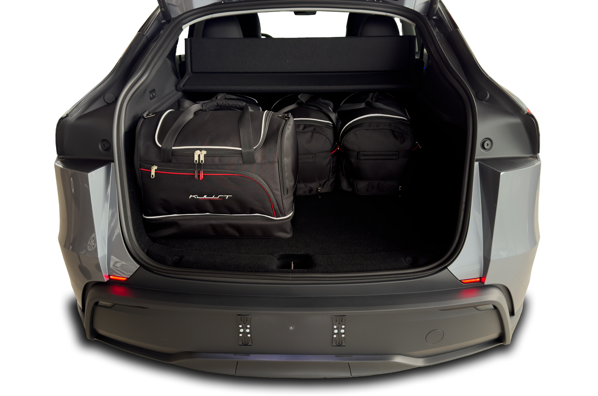 The bags fill every square inch of the boot thanks to their slanted sides that match the angle of the rear seats. This is a unique feature of KJUST car bags.