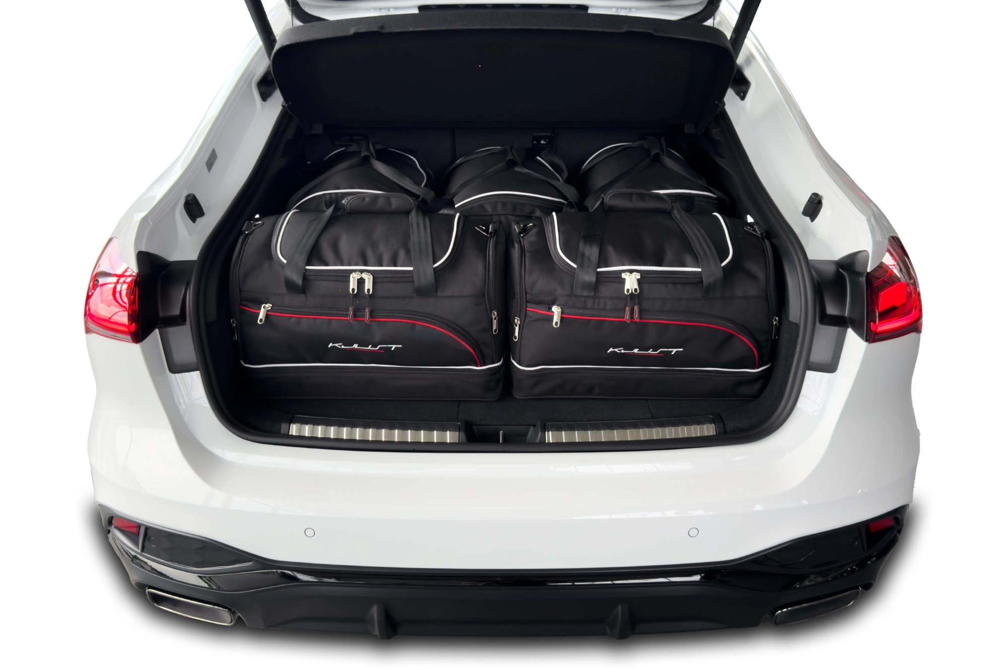 The bags fill every square inch of the boot thanks to their slanted sides that match the angle of the rear seats. This is a unique feature of KJUST car bags.