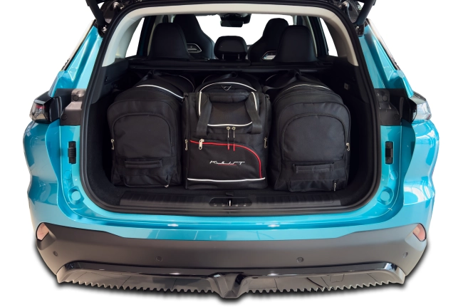 The bags fill every square inch of the boot thanks to their slanted sides that match the angle of the rear seats. This is a unique feature of KJUST car bags.