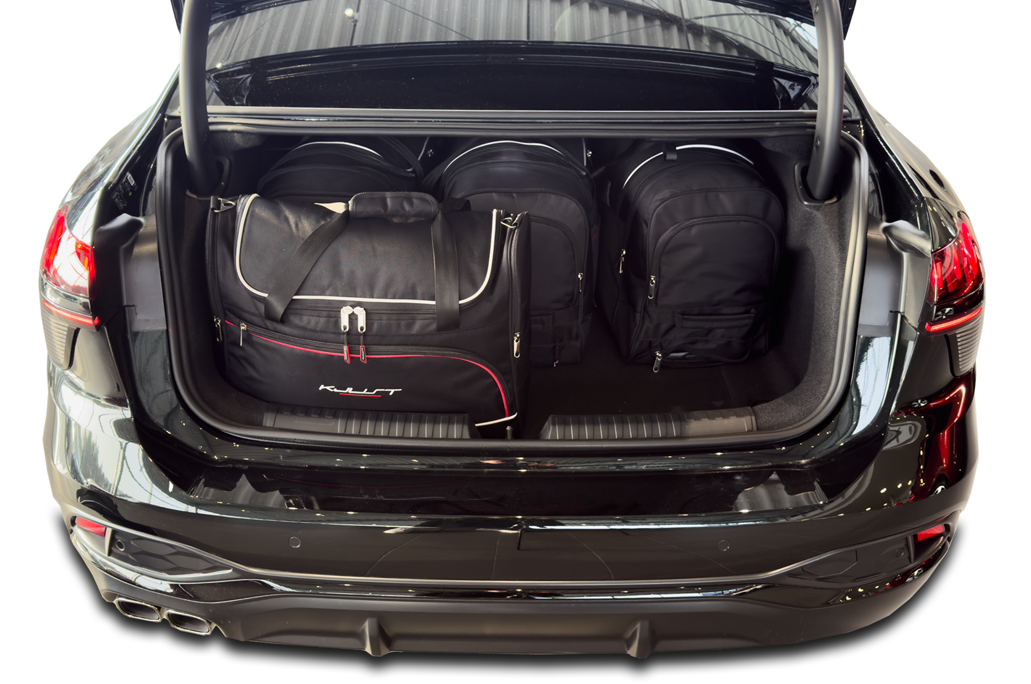 The bags fill every square inch of the boot thanks to their slanted sides that match the angle of the rear seats. This is a unique feature of KJUST car bags.