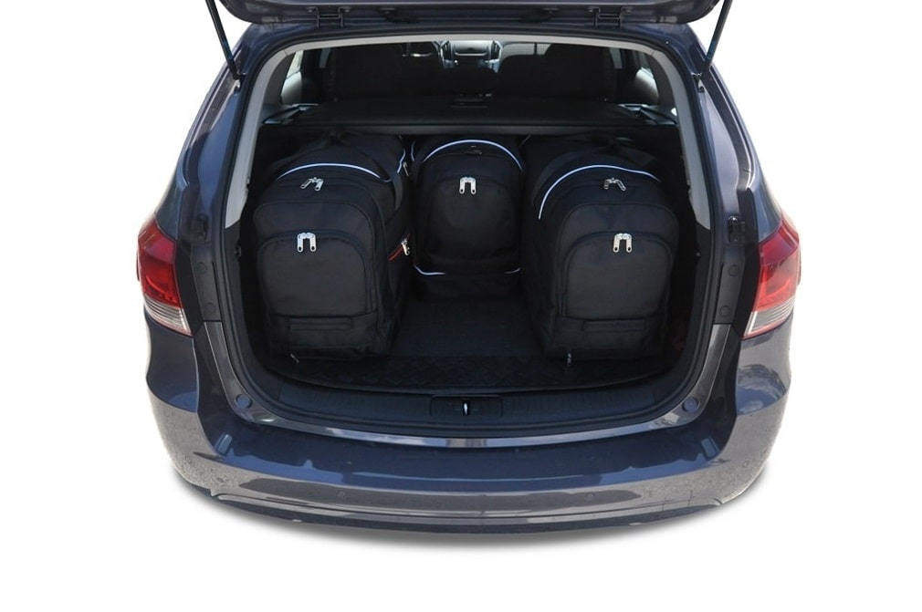 Torby wypełniają każdy centymetr kwadratowy bagażnika dzięki swoim ukośnym bokom dopasowanym do pochylenia tylnych foteli. To unikalna cecha toreb KJUST.