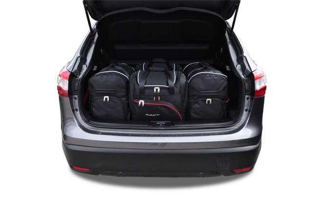 Torby wypełniają każdy centymetr kwadratowy bagażnika dzięki swoim ukośnym bokom dopasowanym do pochylenia tylnych foteli. To unikalna cecha toreb KJUST.