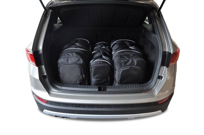 Torby wypełniają każdy centymetr kwadratowy bagażnika dzięki swoim ukośnym bokom dopasowanym do pochylenia tylnych foteli. To unikalna cecha toreb KJUST.
