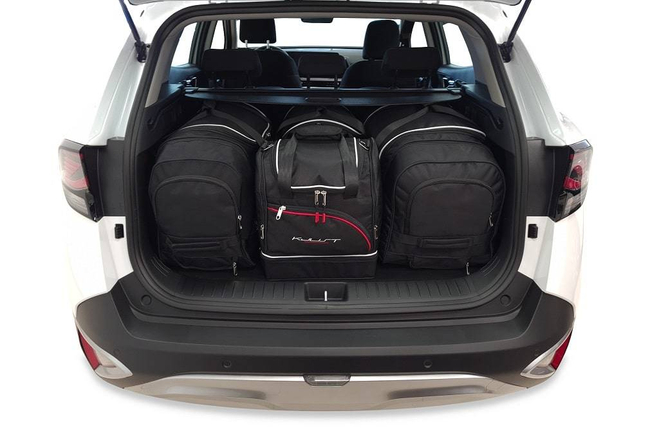 Torby wypełniają każdy centymetr kwadratowy bagażnika dzięki swoim ukośnym bokom dopasowanym do pochylenia tylnych foteli. To unikalna cecha toreb KJUST.