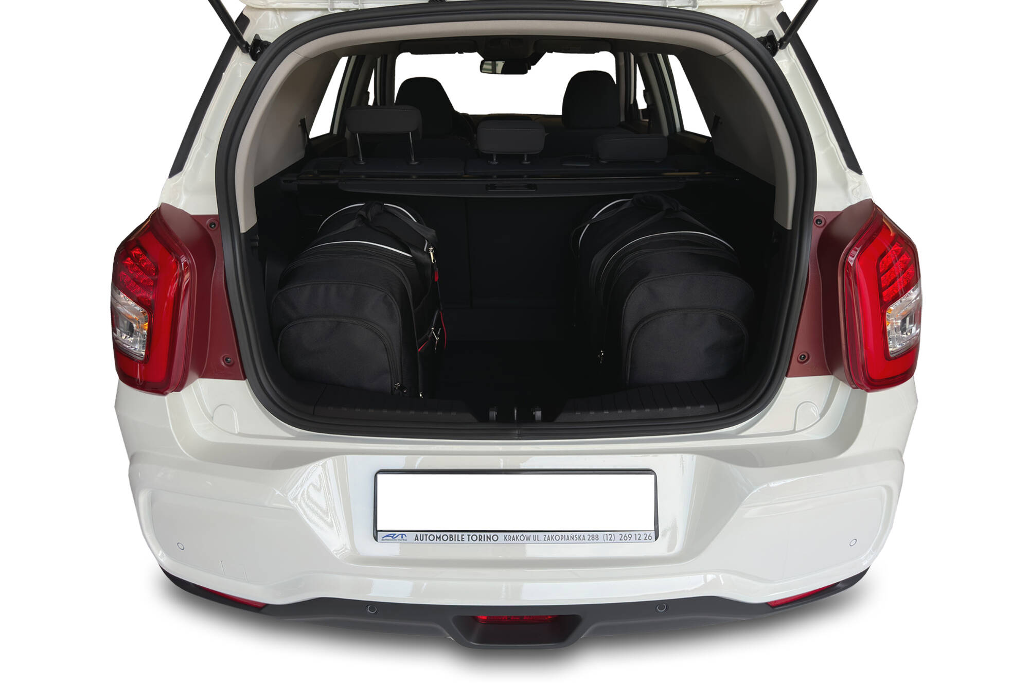 Torby wypełniają każdy centymetr kwadratowy bagażnika dzięki swoim ukośnym bokom dopasowanym do pochylenia tylnych foteli. To unikalna cecha toreb KJUST.