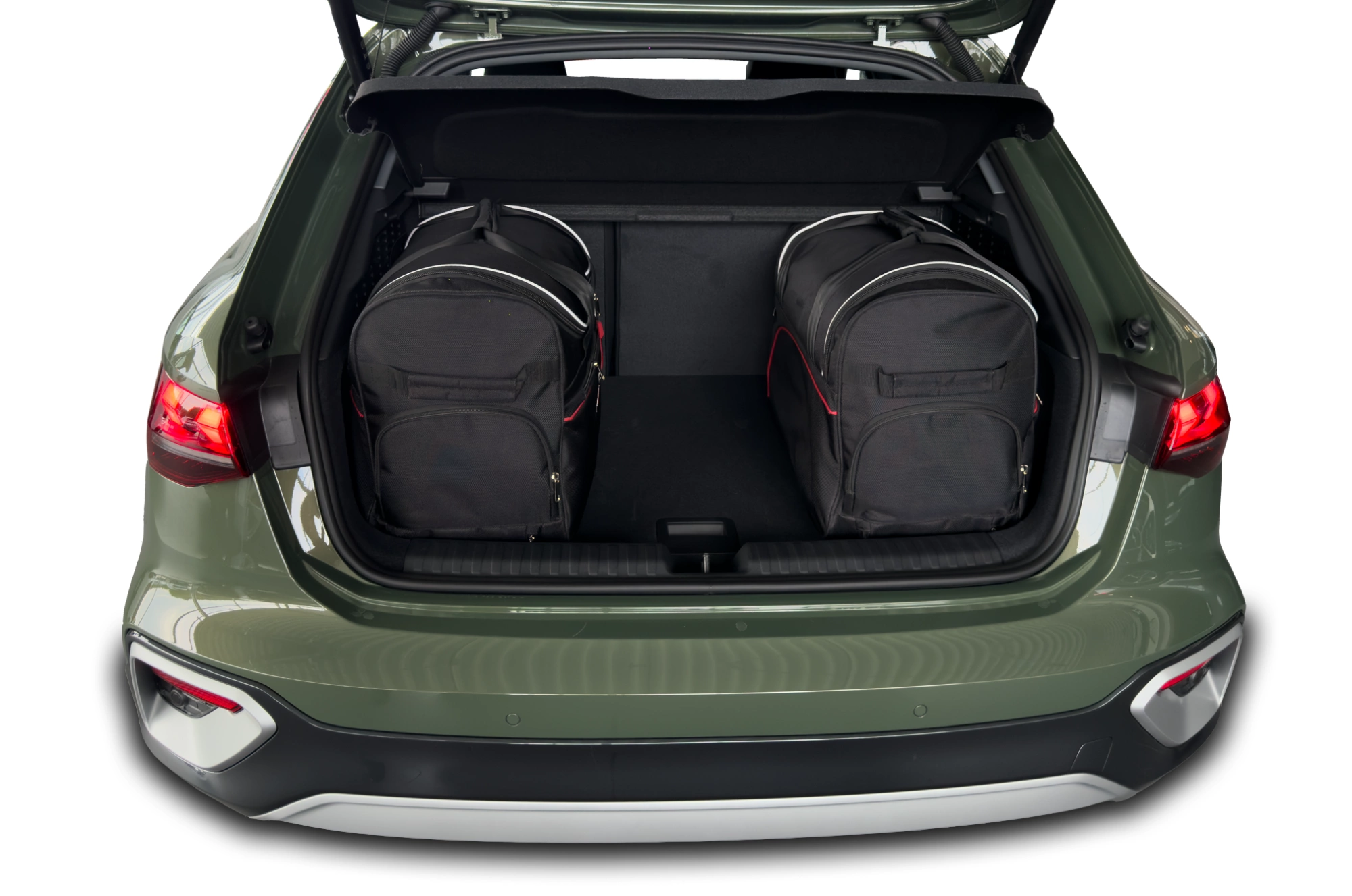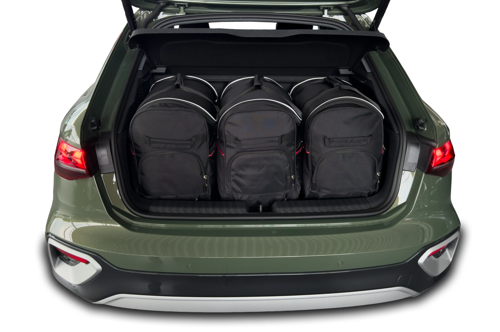 Torby wypełniają każdy centymetr kwadratowy bagażnika dzięki swoim ukośnym bokom dopasowanym do pochylenia tylnych foteli. To unikalna cecha toreb KJUST.