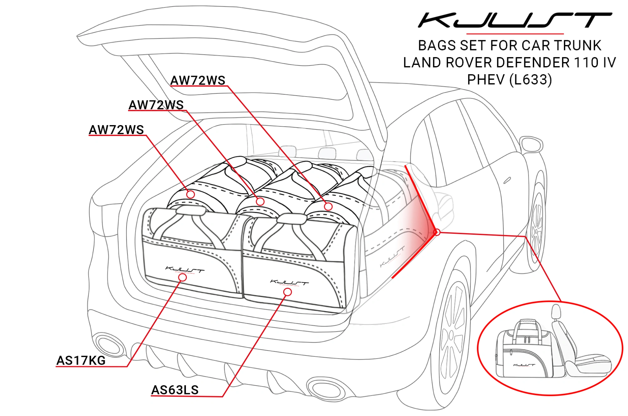 Torby wypełniają każdy centymetr kwadratowy bagażnika dzięki swoim ukośnym bokom dopasowanym do pochylenia tylnych foteli. To unikalna cecha toreb KJUST.