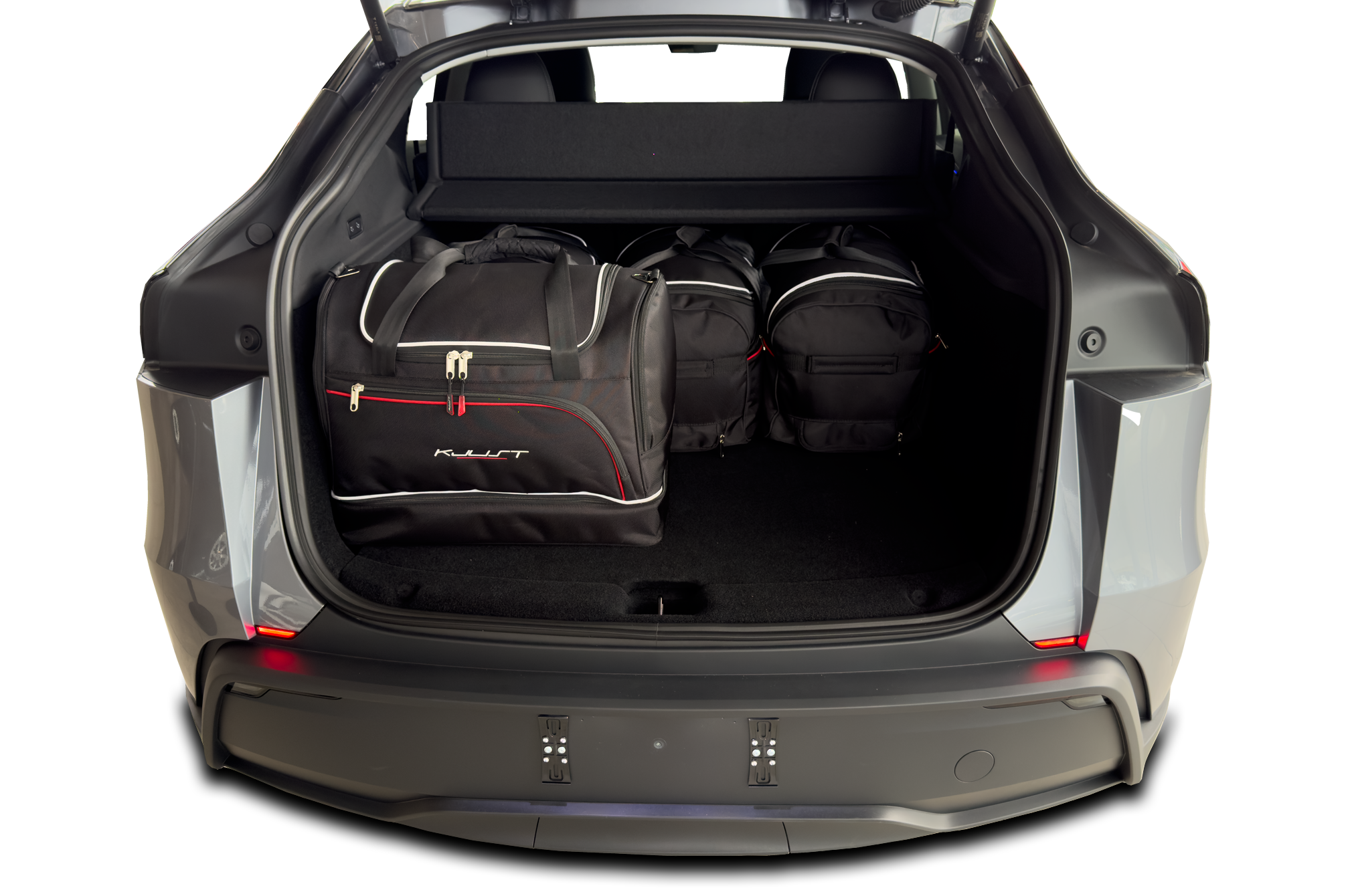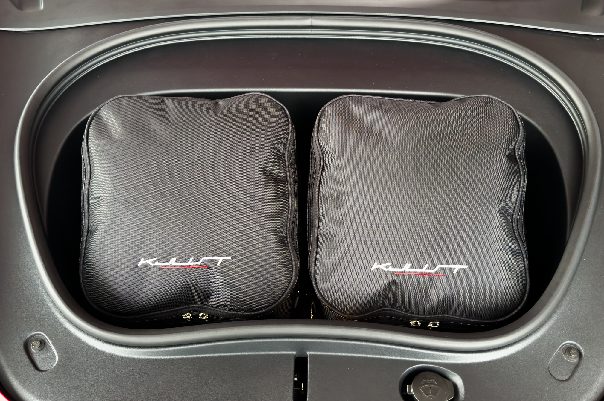 Torby wypełniają każdy centymetr kwadratowy bagażnika dzięki swoim ukośnym bokom dopasowanym do pochylenia tylnych foteli. To unikalna cecha toreb KJUST.